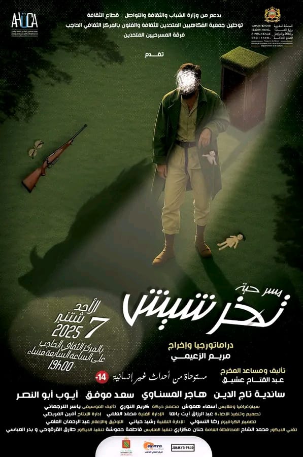 العرض الأول يوم الأحد 7 شتنبر بالمركز الثقافي الحاجب، حمل توقيع عبد الفتاح عشيق في التأليف، وإخراج ودراماتورجيا مريم الزعيمي، بمشاركة طاقات شابة أضفت على النص حيوية وإيقاعا متجددا وتجايلا متثمر.